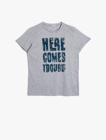 Pamuklu Baskılı Kısa Kollu Bisiklet Yaka Tişört Sepete Ekle