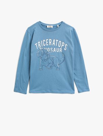 Erkek Çocuk Dinozor Baskılı Uzun Kollu Tişört