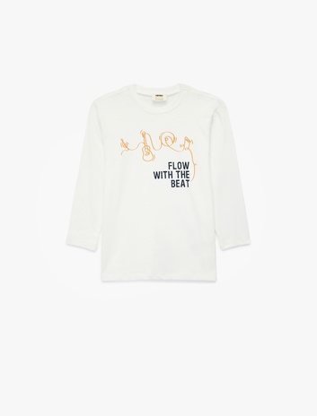 Uzun Kollu Pamuklu Bisiklet Yaka Baskılı Tişört Sepete Ekle
