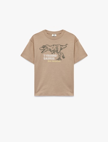 Pamuklu Kısa Kollu Bisiklet Yaka Dinozor Baskılı Tişört Sepete Ekle