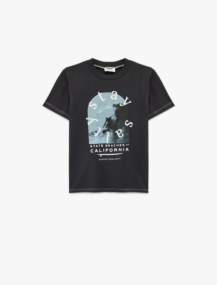 Pamuklu Kısa Kollu Bisiklet Yaka Baskılı Tişört Sepete Ekle