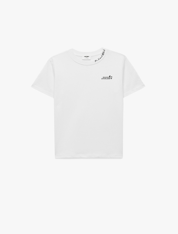 Pamuklu Kısa Kollu Bisiklet Yaka Arkası Baskılı Tişört Sepete Ekle