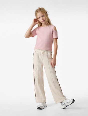 Kız Çocuk Pamuklu Cep Detaylı Beli Bağlamalı Geniş Paça Pantolon
