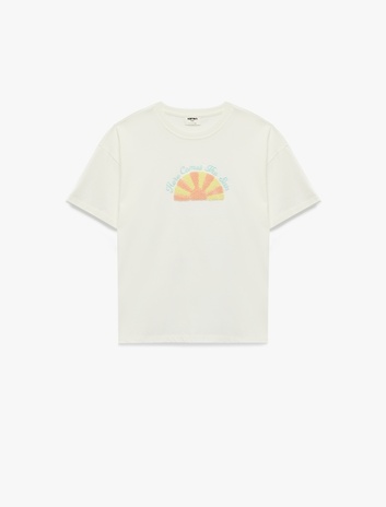 Kısa Kollu Bisiklet Yaka Baskılı Pamuklu Tişört Sepete Ekle