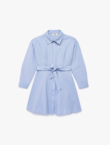 Kuşak Detaylı Uzun Kollu Poplin Çizgili Gömlek Yaka Elbise Sepete Ekle
