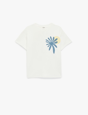 Pamuklu Kısa Kollu Bisiklet Yaka Baskılı Pamuklu Tişört Sepete Ekle