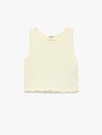 Kolsuz Bisiklet Yaka  Taş Detaylı Pamuklu Atlet Sepete Ekle