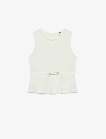 Bisiklet Yaka Toka Detaylı Kolsuz Bluz Sepete Ekle