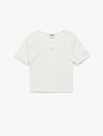 Kısa Kollu Kare Yaka Pamuklu Fiyonklu Tişört Sepete Ekle