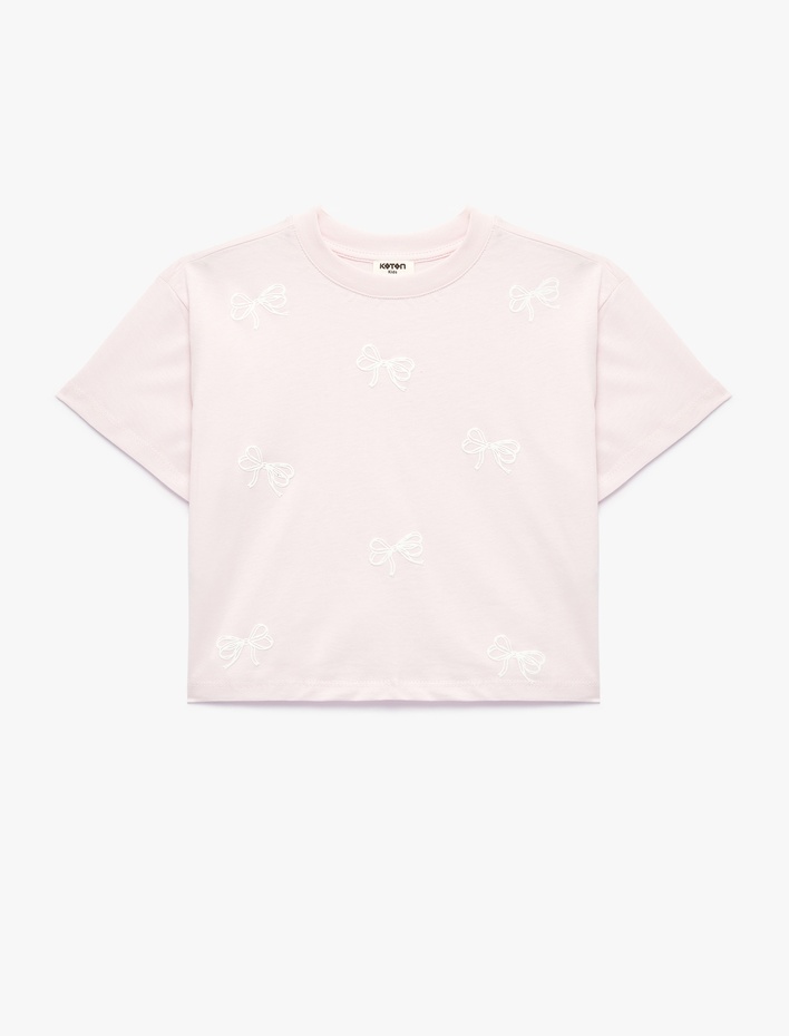 Pamuklu Pileli Bisiklet Yaka Kısa Kollu Tişört Sepete Ekle