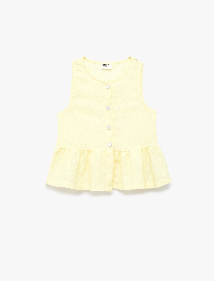 Düğme Detaylı Kolsuz Bisiklet Yaka Brodeli Bluz Sepete Ekle