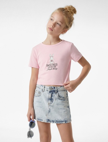 { "id": "8684848783169", "name": "Pamuklu Kısa Kollu Bisiklet Yaka Tavşan Baskılı Crop Tişört", "taxonomy":["KIDSWEAR","GIRLSWEAR","GIRLS","JERSEY","TSHIRT SS"], "currency": "TRY", "unit_price": 299.99 , "unit_sale_price": 299.99 , "url": "https://www.koton.com/pamuklu-kisa-kollu-bisiklet-yaka-tavsan-baskili-crop-tisort-gul-4152210/", "stock": 28, "color": "PEMBE", "size": "5/6 Yaş", "product_image_url": "https://ktnimg2.mncdn.com/products/2026/04/09/3218179/5c8fd87b-4dfe-4d38-9c4a-521453d24756_size870x1142.jpg" }