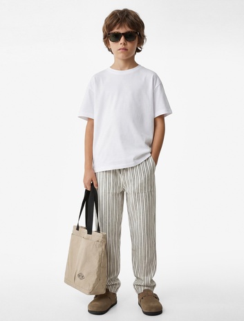 Erkek Çocuk Pamuklu Beli Bağcıklı Rahat Kesim Çizgili Pantolon