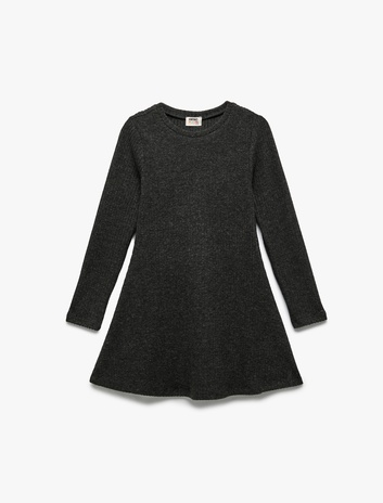 Kız Çocuk Bisiklet Yaka Viskon Karışımlı Uzun Kollu Elbise