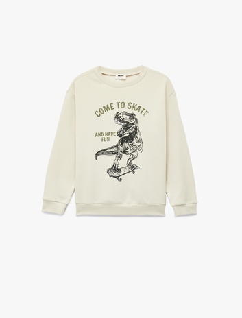 Dinozor Baskılı Uzun Kollu Bisiklet Yaka Şardonlu Sweatshirt Sepete Ekle