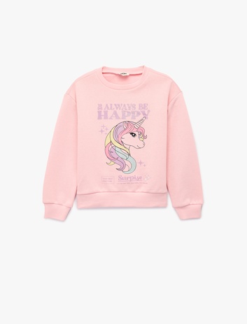 Pamuklu Uzun Kollu Unicorn Baskılı Şardonlu Sweatshirt Sepete Ekle