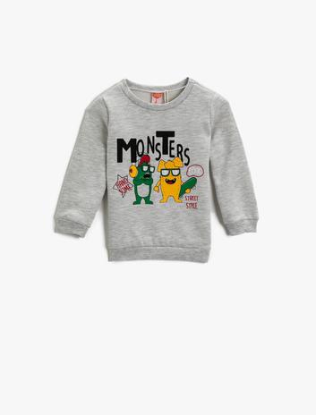 Baskılı Sweatshirt Bisiklet Yaka Pamuklu Sepete Ekle