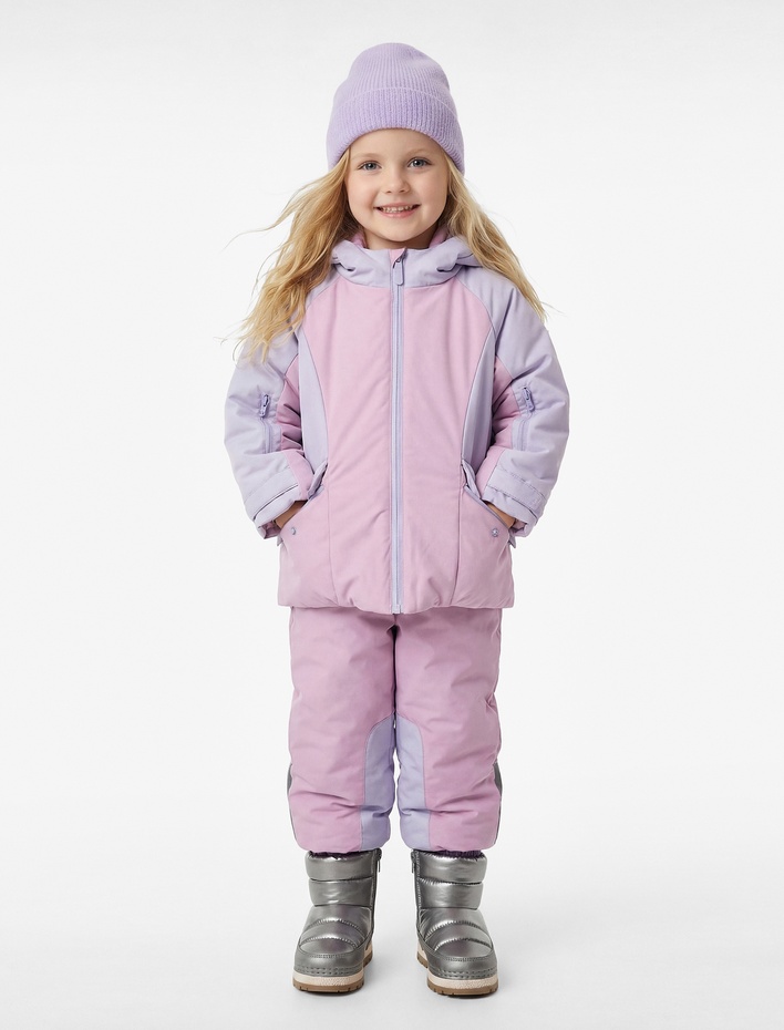 Kız Bebek Kare Yaka Cep Detaylı Fermuarlı Oversize Kar Tulumu