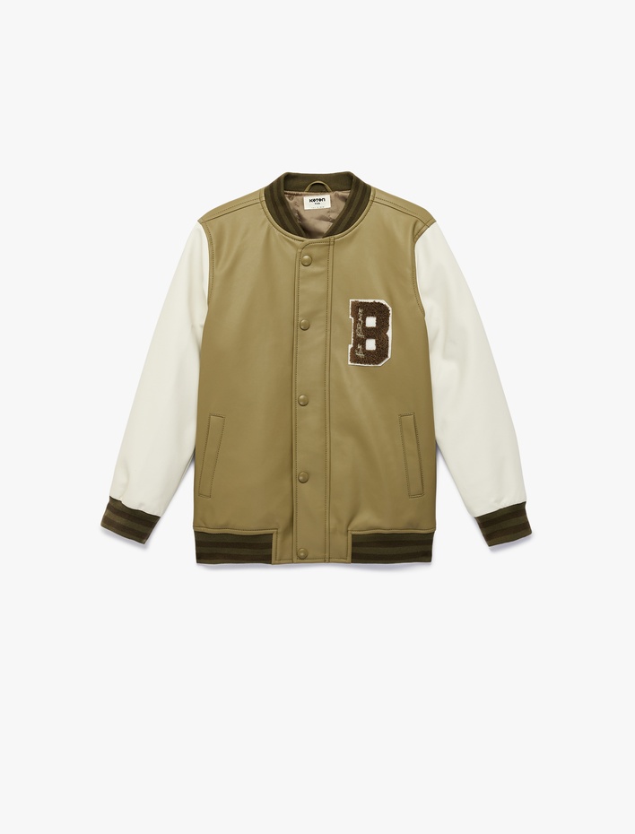 Erkek Çocuk Kolej Bomber Ceket Aplike Detaylı Çıtçıt Kapamalı Şardonlu