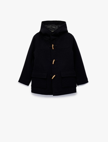 Erkek Çocuk Kapşonlu Düğmeli Uzun Kollu Yün Karışımlı Kaban