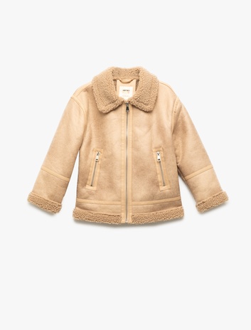 Kız Çocuk Uzun Kollu Peluş Astarlı Gömlek Yaka Ceket