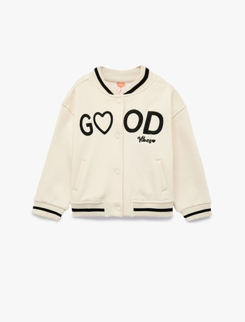 Kız Bebek Bomber Ceket Arkası Baskı Detaylı Uzun Kollu Çıtçıt Kapamalı Şardonlu
