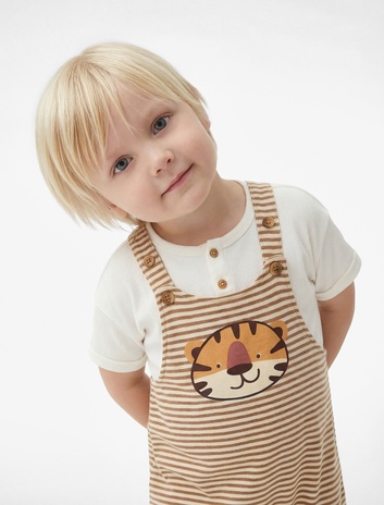Erkek Bebek Pamuklu Kaplan Baskılı Çizgili Askılı Tulum