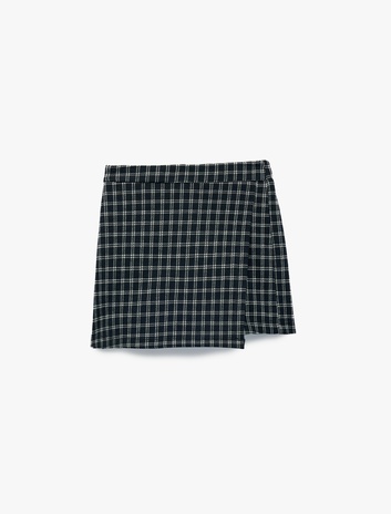 Ekoseli Beli Lastikli Kruvaze Şort Etek Sepete Ekle
