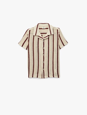 Pamuklu Cepli Devrik Yaka Kısa Kollu Çizgili Gömlek Sepete Ekle