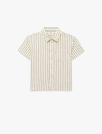 Erkek Çocuk Pamuklu Cepli Devrik Yaka Kısa Kollu Çizgili Gömlek