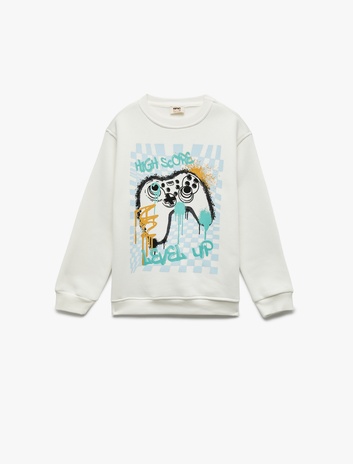 Baskılı Uzun Kollu Bisiklet Yaka Şardonlu Sweatshirt Sepete Ekle