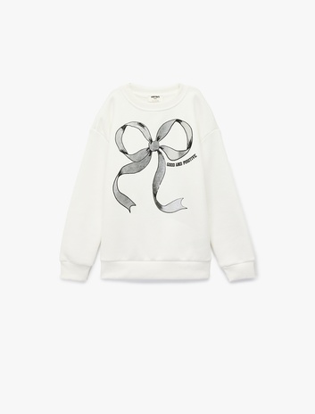 Bisiklet Yaka Uzun Kollu Fiyonk Baskılı Şardonlu Sweatshirt Sepete Ekle
