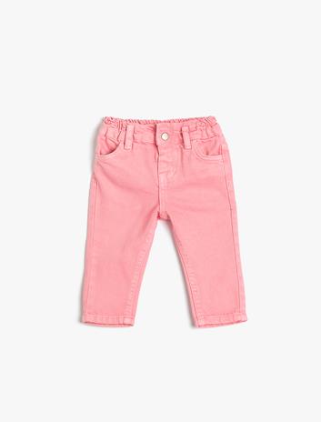 Kız Bebek Kot Pantolon, Beli Lastikli, Pamuklu, Cepli - Slim Jean
