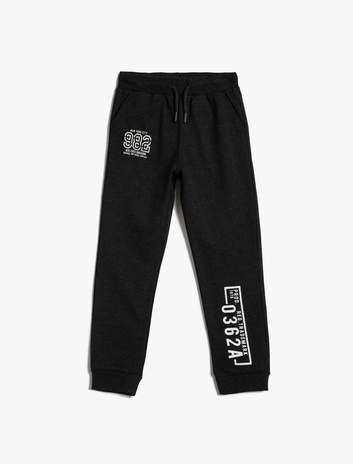 Erkek Çocuk Jogger Eşofman Altı Baskılı Beli Bağlamalı Fermuarlı Cepli