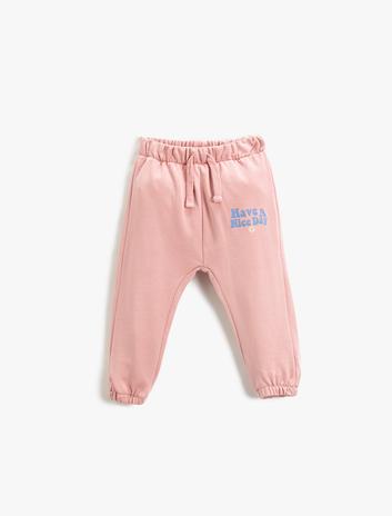 Kız Bebek Jogger Eşofman Altı Beli Lastikli Baskı Detaylı