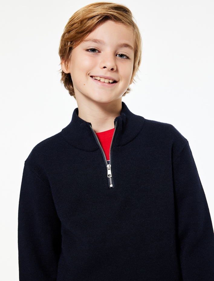 Erkek Çocuk Yarım Fermuarlı Uzun Kollu Viskon Karışımlı Triko Kazak
