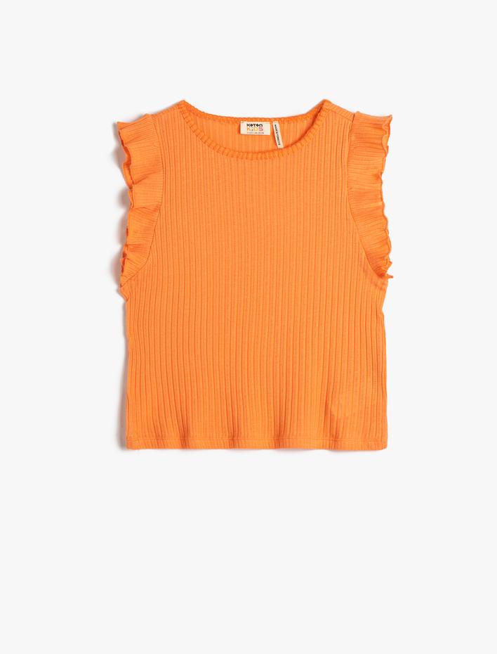 Kız Çocuk Atlet Fırfırlı Yuvarlak Yaka Ribanalı Pamuklu