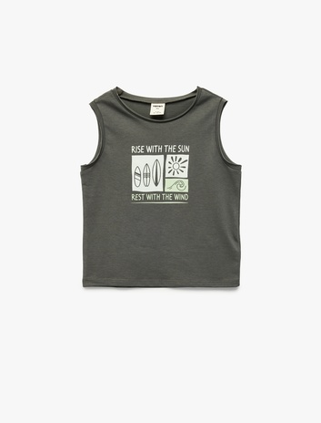 Pamuklu Bisiklet Yaka Kolsuz Baskılı Atlet Sepete Ekle