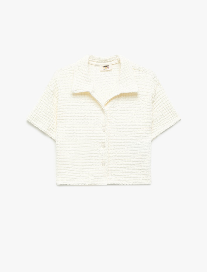 Kısa Kollu Düğmeli Gömlek Yaka Crop Bluz Sepete Ekle