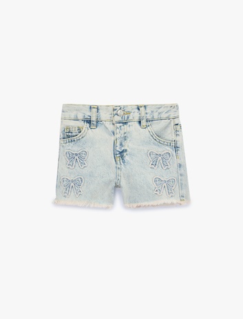 Fiyonk Nakış Detaylı Cepli Pamuklu Denim Şort Sepete Ekle