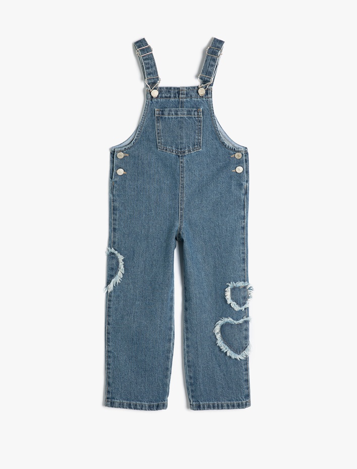 Kız Bebek Kot Tulum Cep Detaylı Kanguru Cepli Pamuklu