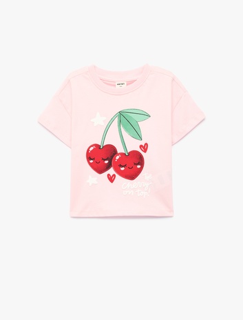 Kız Bebek Pamuklu Bisiklet Yaka Kısa Kollu Baskılı Tişört