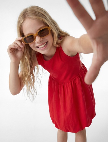 Kız Çocuk Pamuklu Kolsuz Bisiklet Yaka Pileli Balon Elbise