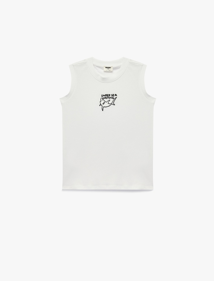 Pamuklu Kolsuz Bisiklet Yaka Nakış Detaylı Atlet Sepete Ekle