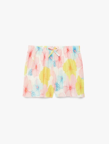 Çiçek Desenli Beli Bağcıklı Pileli Şort Sepete Ekle