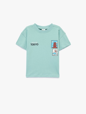 Kısa Kollu Bisiklet Yaka Baskılı Pamuklu Tişört Sepete Ekle
