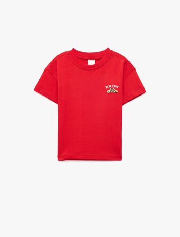 { "id": "8684969928227", "name": "Pamuklu Kısa Kollu Bisiklet Yaka Nakışlı Tişört", "taxonomy":["KIDSWEAR","BABYBOY","BABYBOY","JERSEY","TSHIRT SS"], "currency": "TRY", "unit_price": 359.99 , "unit_sale_price": 359.99 , "url": "https://www.koton.com/pamuklu-kisa-kollu-bisiklet-yaka-nakisli-tisort-kirmizi-4168106/", "stock": 69, "color": "KIRMIZI", "size": "4/5 Yaş", "product_image_url": "https://ktnimg2.mncdn.com/products/2026/04/02/3223941/c8b8529a-bfba-441f-8eda-17b9e36ef92b_size870x1142.jpg" }