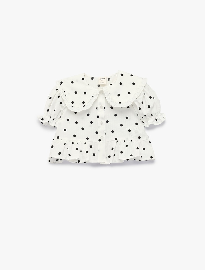 Pamuklu Puantiyeli Kısa Kollu Bebe Yaka Bluz Sepete Ekle