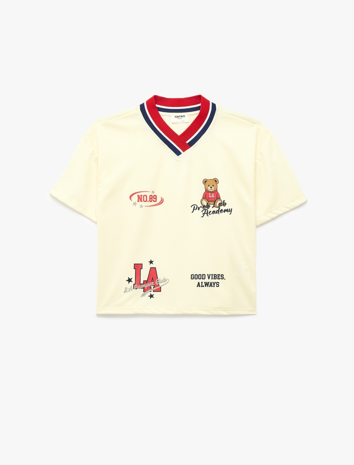 Baskı Detaylı Pamuklu Kısa Kollu V Yaka Tişört Sepete Ekle