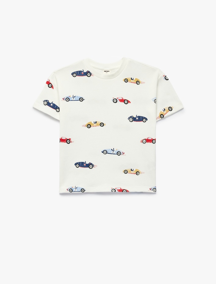 Pamuklu Araba Desenli Kısa Kollu Biisklet Yaka Tişört Sepete Ekle